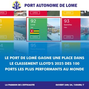 Le Port de Lomé consolide son rang parmi les 100 premiers ports à conteneurs du monde. Une nouvelle prouesse logistique qui confirme la montée en