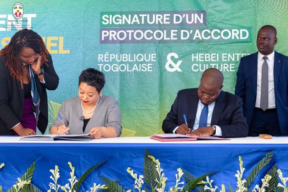 Le 24 avril 2026 à Kara, le ministre délégué chargé de la Promotion des Investissements et de la Souveraineté Économique, Dr Arthur Lilas TRIMUA, a procédé à la signature d’un protocole d’accord entre la République togolaise et l’Association des Entreprises et de la Culture de Hebei, représentée par Mme Lisha Yan. Cet accord s’inscrit dans la dynamique de développement du parc industriel de Kara.
