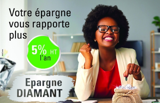 Conçu pour répondre aux besoins des épargnants les plus exigeants, ce nouveau placement allie sécurité, performance et grande flexibilité. Avec un taux d’intérêt fixe de 5 % HT par an, appliqué dès le premier franc CFA, l’Épargne Diamant se positionne comme l’un des produits les plus attractifs du marché.