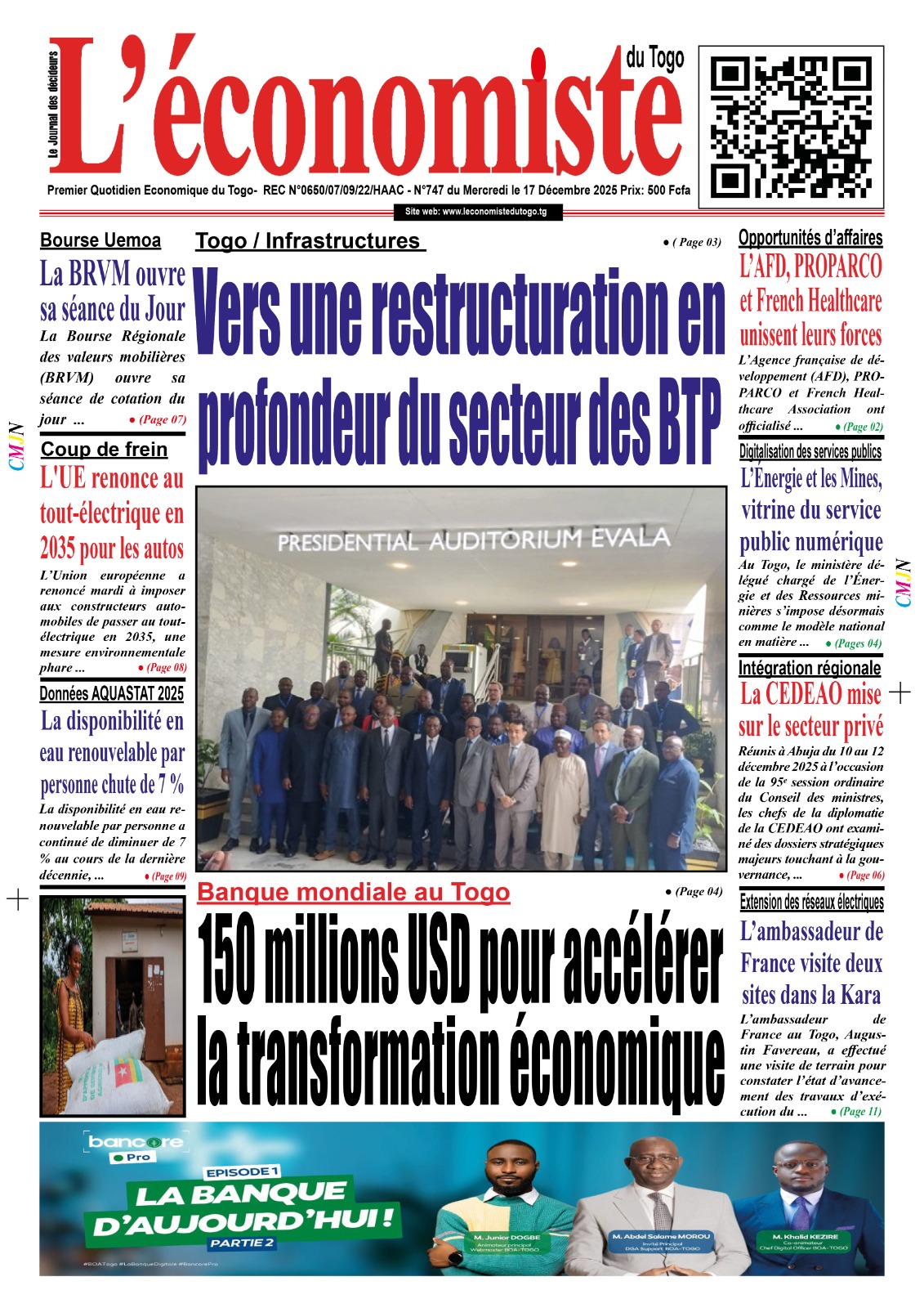 L’audience s’est déroulée le 04 décembre 2025, au siège de la Commission de l’UEMOA à Ouagadougou. La délégation du CIP...