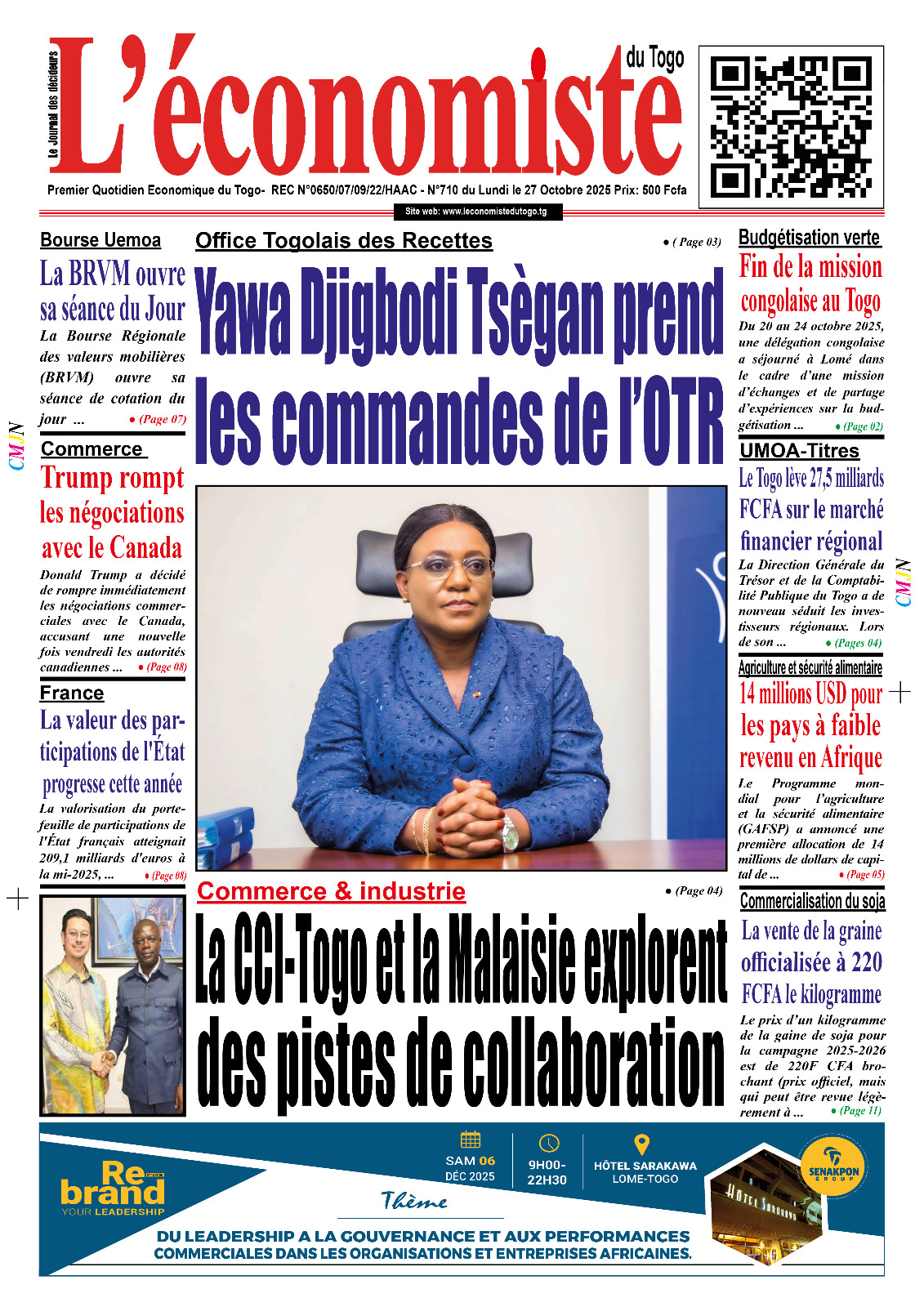 La Chambre de Commerce et d’Industrie du Togo (CCI-Togo) a reçu, le jeudi 23 octobre, le Chargé d’Affaires de la...