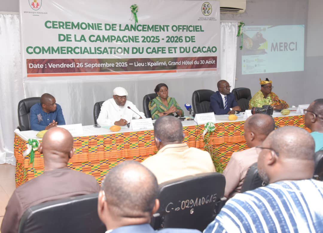 Le Togo a lancé, vendredi 26 septembre 2025 à Kpalimé, la campagne 2025-2026 de commercialisation du café et du cacao. L’événement, placé sous le double signe de la performance économique et de la consommation locale, a réuni les autorités, les producteurs, les exportateurs et l’ensemble des acteurs des deux filières stratégiques.